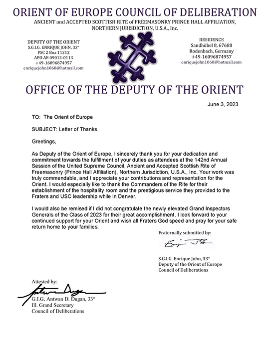 The Annual Saint John’s Day Celebration was held June 24, 2023 in conjunction with Maryland and Oklahoma Jurisdiction at Vogelweh High School Kaiserslautern, Germany.